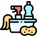 L’entretien des locaux se fait avec des produits adaptés (vapeur, produit de nettoyage et lessive).